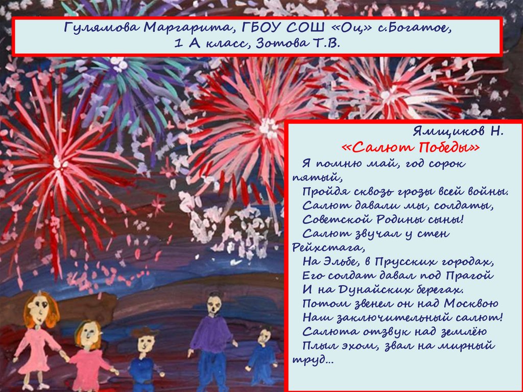 Гулямова Маргарита, ГБОУ СОШ «Оц» с.Богатое,1 А класс, Зотова Т.В.