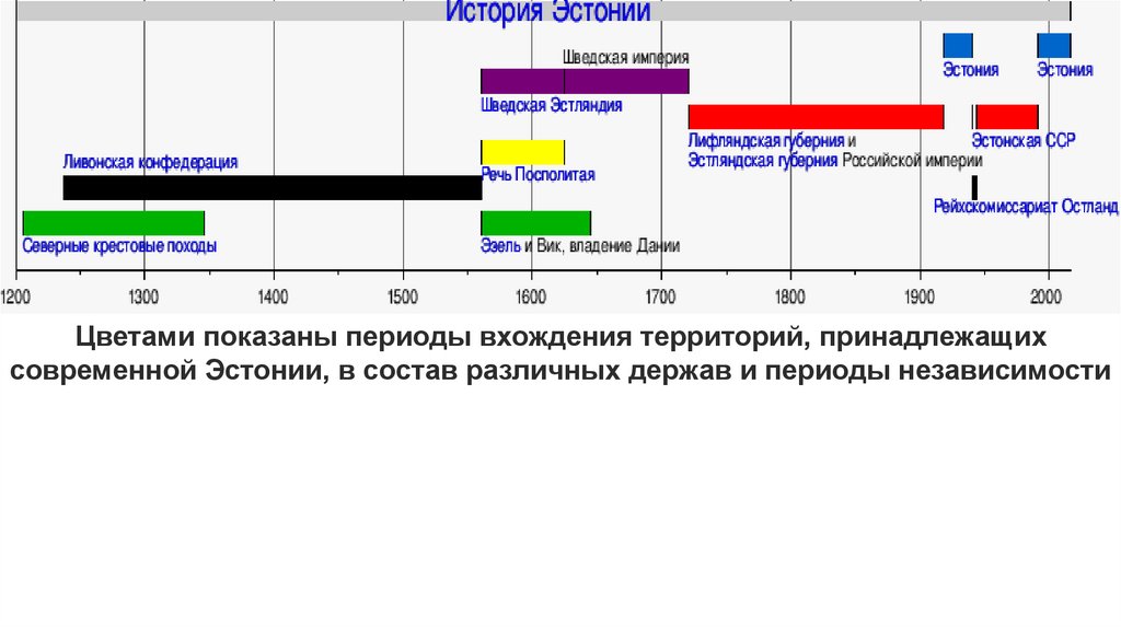 Цветами показаны периоды вхождения территорий, принадлежащих