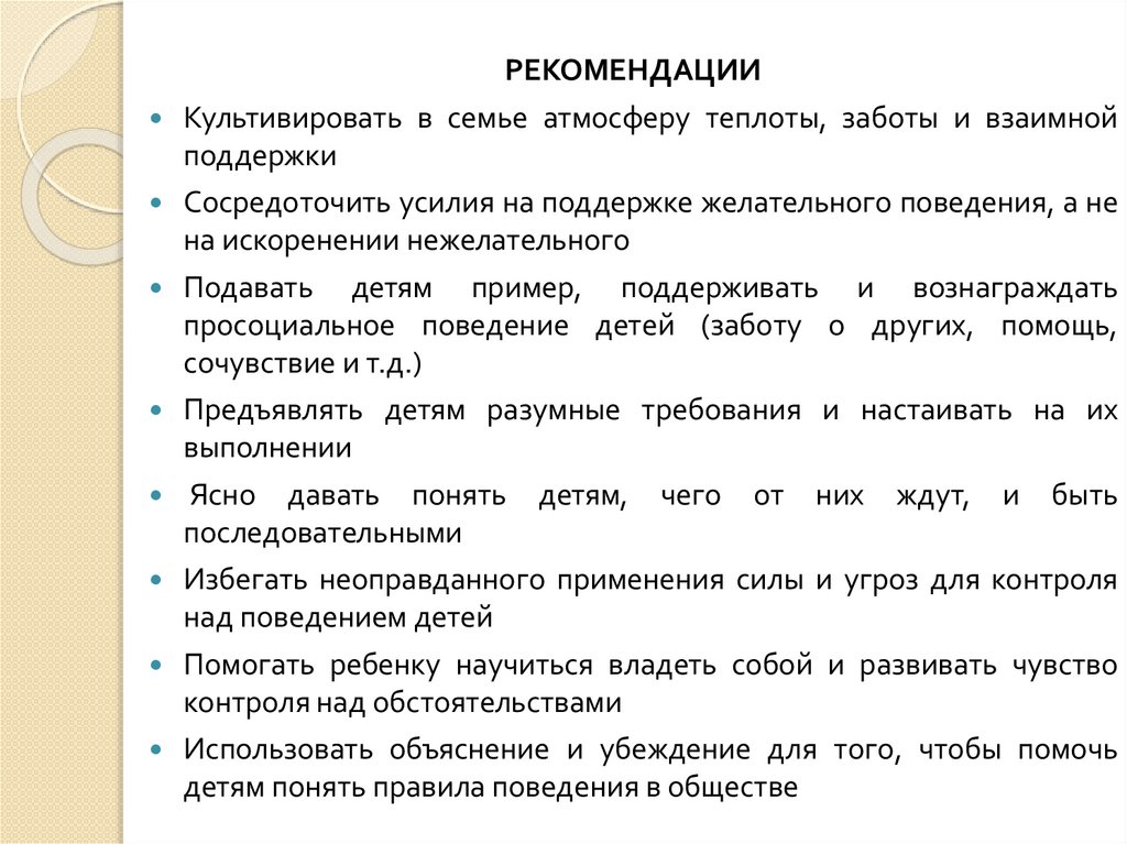 РЕКОМЕНДАЦИИКультивировать в семье атмосферу теплоты, заботы и взаимной