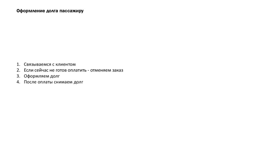 Оформление долга пассажиру1.