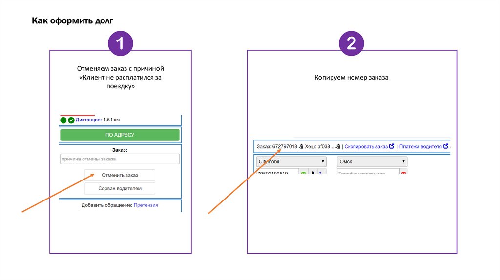 заказа и сумму долга
