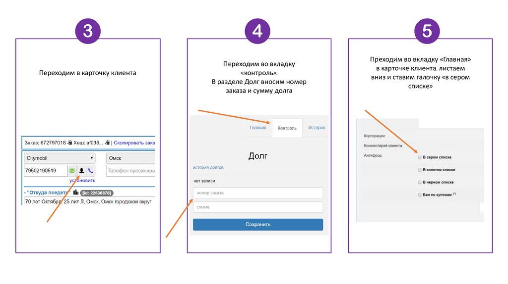 в карточке клиента, листаем