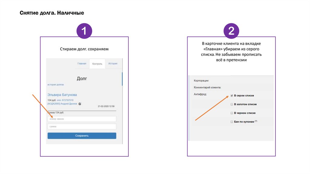 Снятие долга. НаличныеСтираем долг, сохраняем