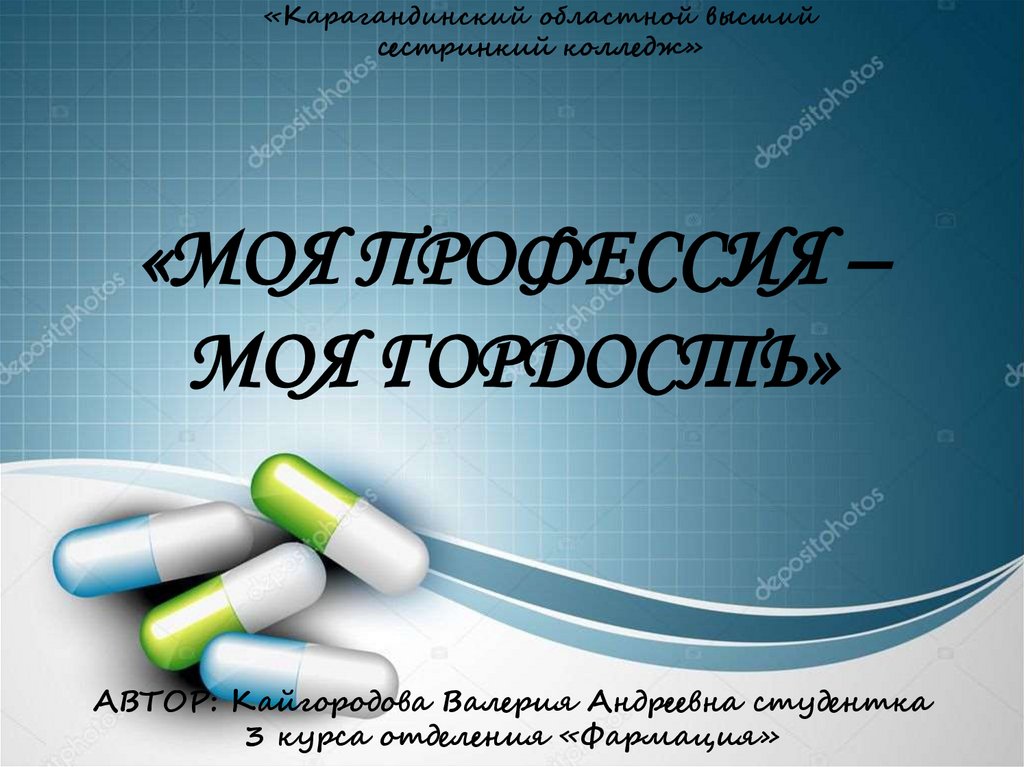 1. «МОЯ ПРОФЕССИЯ – МОЯ ГОРДОСТЬ» АВТОР: Кайгородова Валерия Андреевна студентка 3 курса отделения «Фармация»