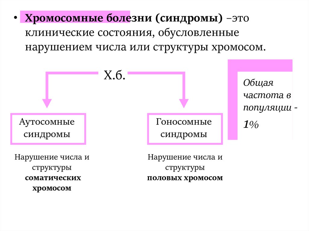 • Хромосомные болезни (синдромы) –этоклинические состояния, обусловленные