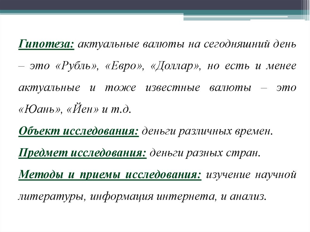 Гипотеза: актуальные валюты на сегодняшний день– это «Рубль», «Евро», «Доллар», но есть и менее