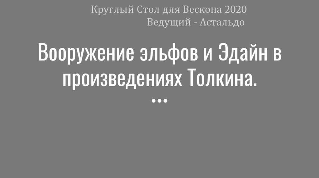 Круглый Стол для Вескона 2020Ведущий - Астальдо
