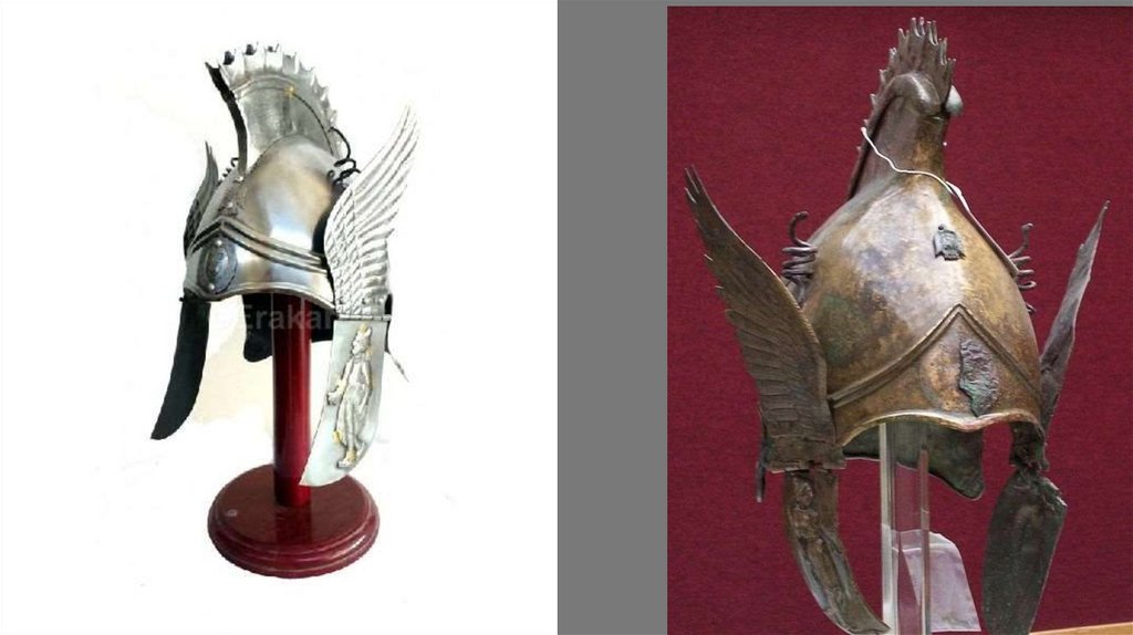 “Tall helms with red plumes”, “Where still he wore his crowned helm”, “round caps of steel were covered