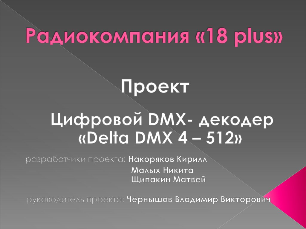 Декодер «Delta DMX 4-512» предназначен для управленияпо цифровому протоколу DMX-512 управлять различными