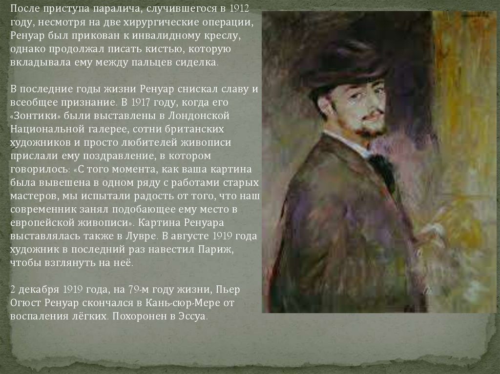 Огюст Ренуар скончался в Кань-сюр-Мере от