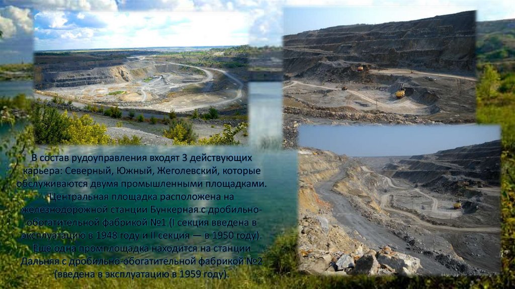 В состав рудоуправления входят 3 действующихкарьера: Северный, Южный, Жеголевский, которые