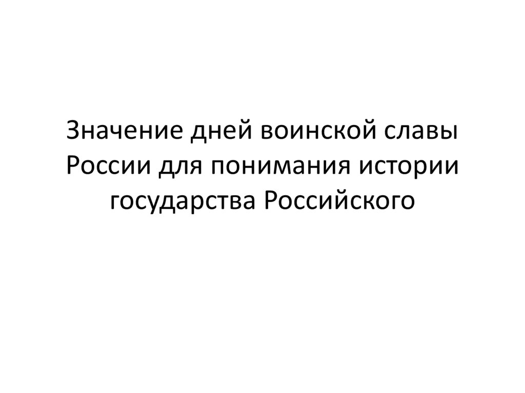 1. Значение дней воинской славы России для понимания истории государства Российского