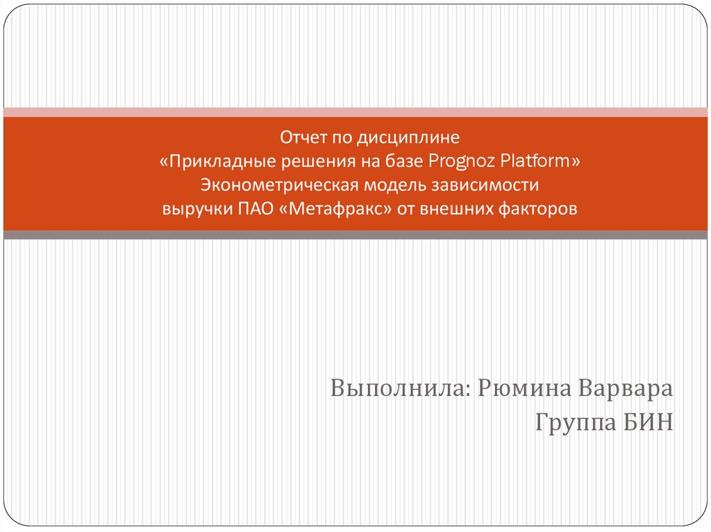 1. Отчет по дисциплине «Прикладные решения на базе Prognoz Platform» Эконометрическая модель зависимости выручки ПАО «Метафракс»