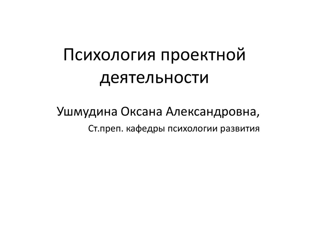 Ушмудина Оксана Александровна,Ст.преп. кафедры психологии развития