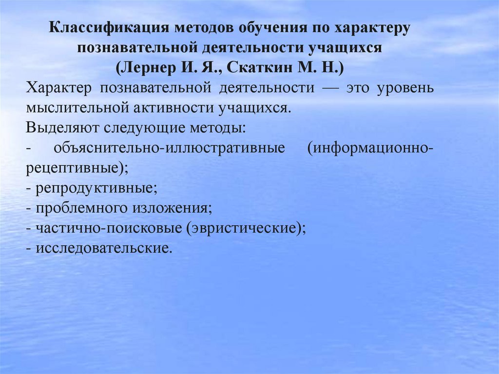 Классификация методов обучения по характерупознавательной деятельности учащихся