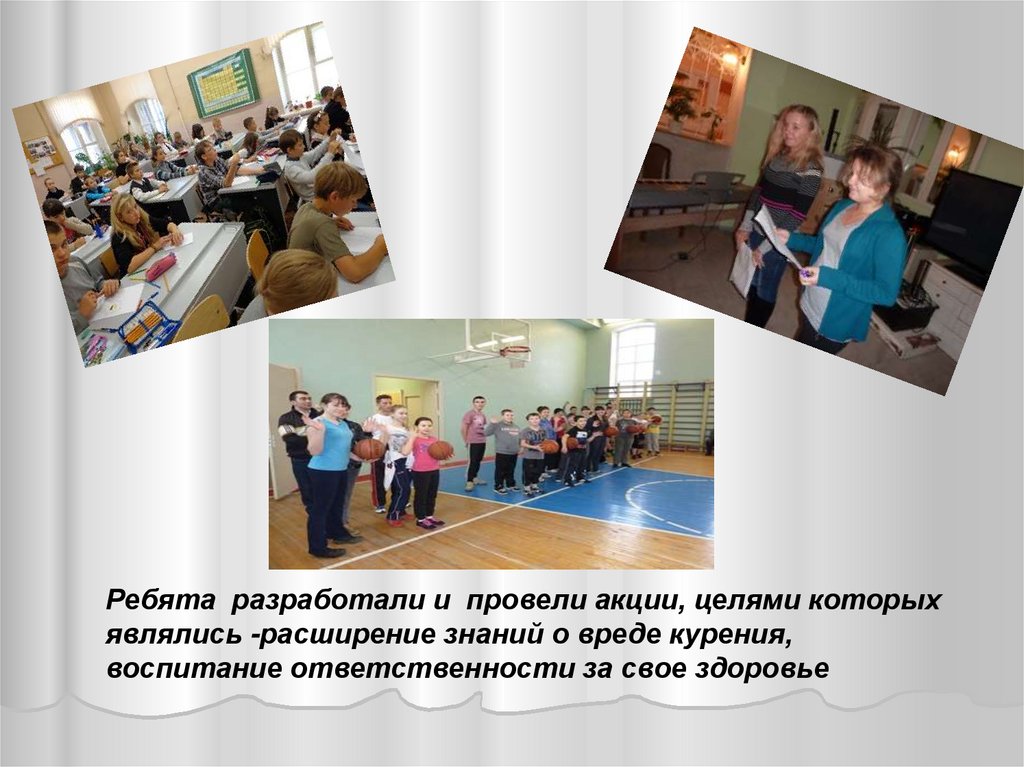 Ребята разработали и провели акции, целями которыхявлялись -расширение знаний о вреде курения,