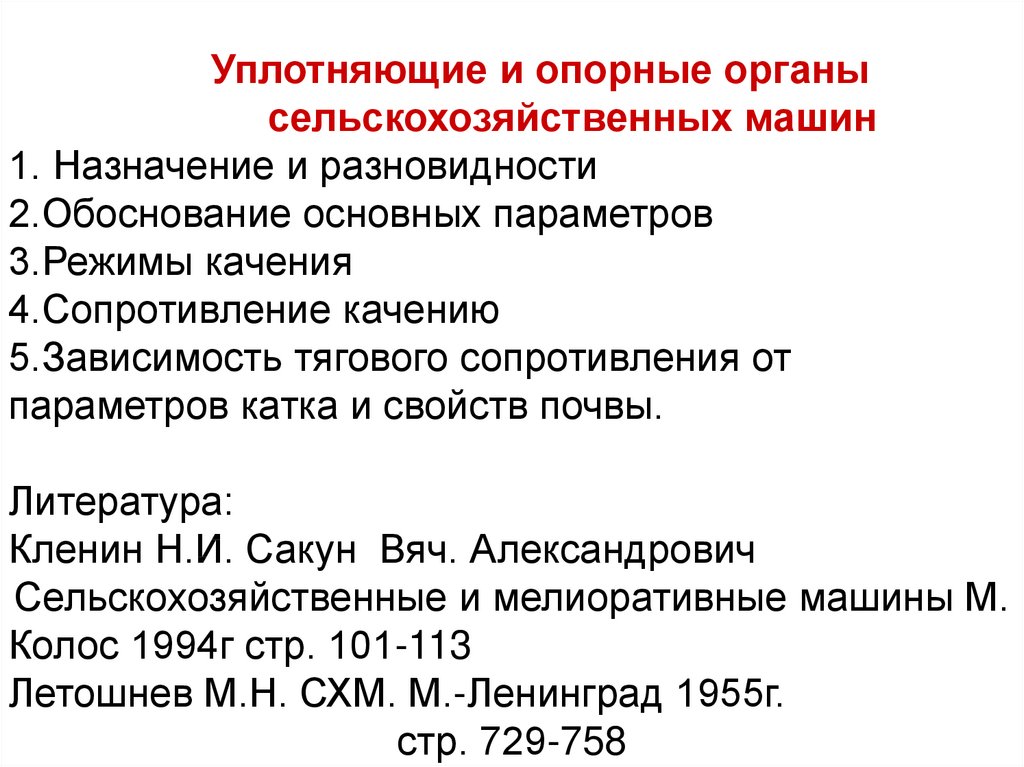 Уплотняющие и опорные органы сельскохозяйственных машин