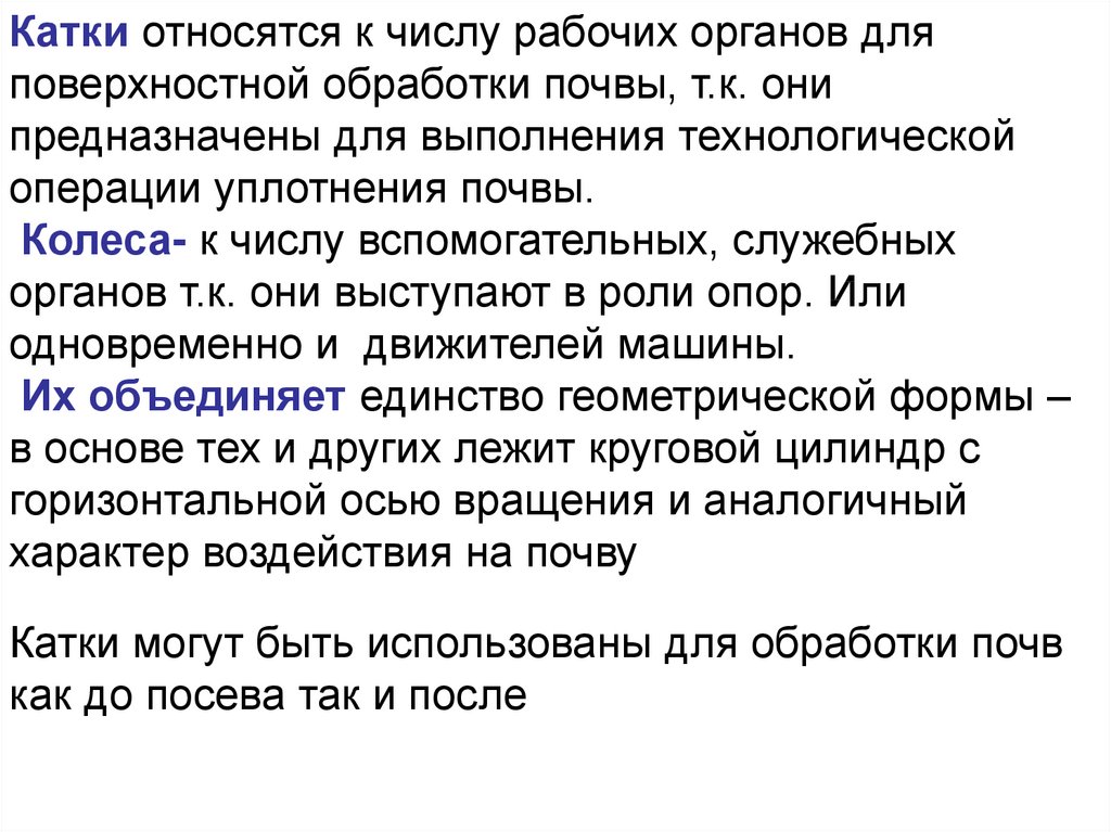 Катки относятся к числу рабочих органов дляповерхностной обработки почвы, т.к. они