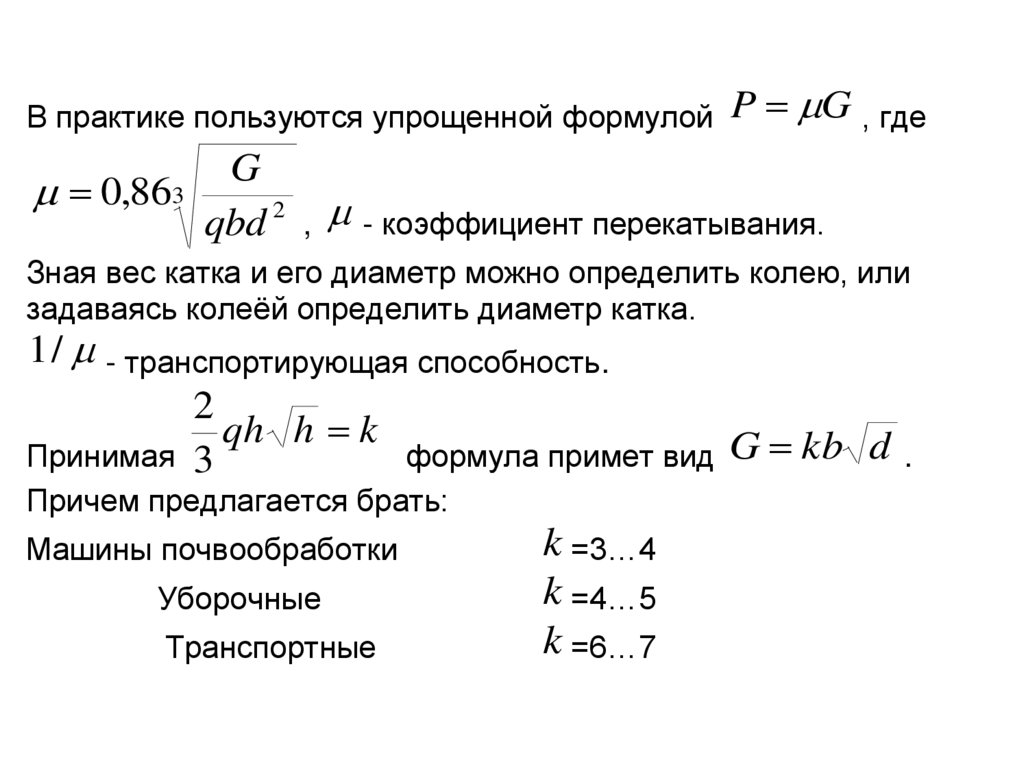 Основные параметры катков (колес) – это диаметри длина (ширина) обода и коэффициент трения о