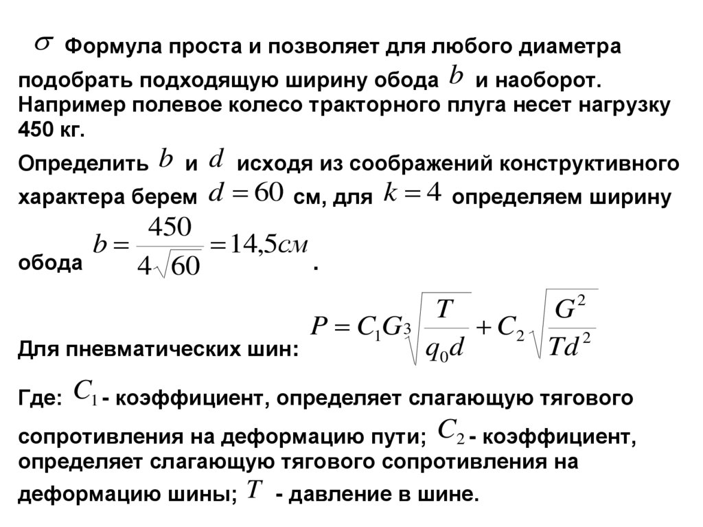 Формула проста и позволяет для любого диаметраподобрать подходящую ширину обода b и наоборот.