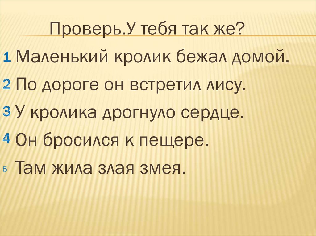 Проверь.У тебя так же?1 Маленький кролик бежал домой.