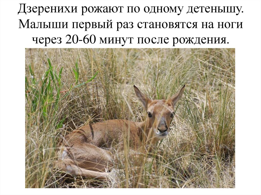 Дзеренихи рожают по одному детенышу.Малыши первый раз становятся на ноги