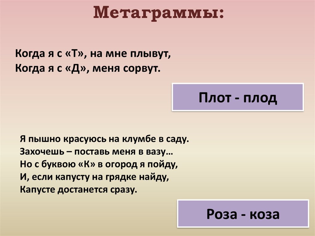 Метаграммы:Когда я с «Т», на мне плывут,