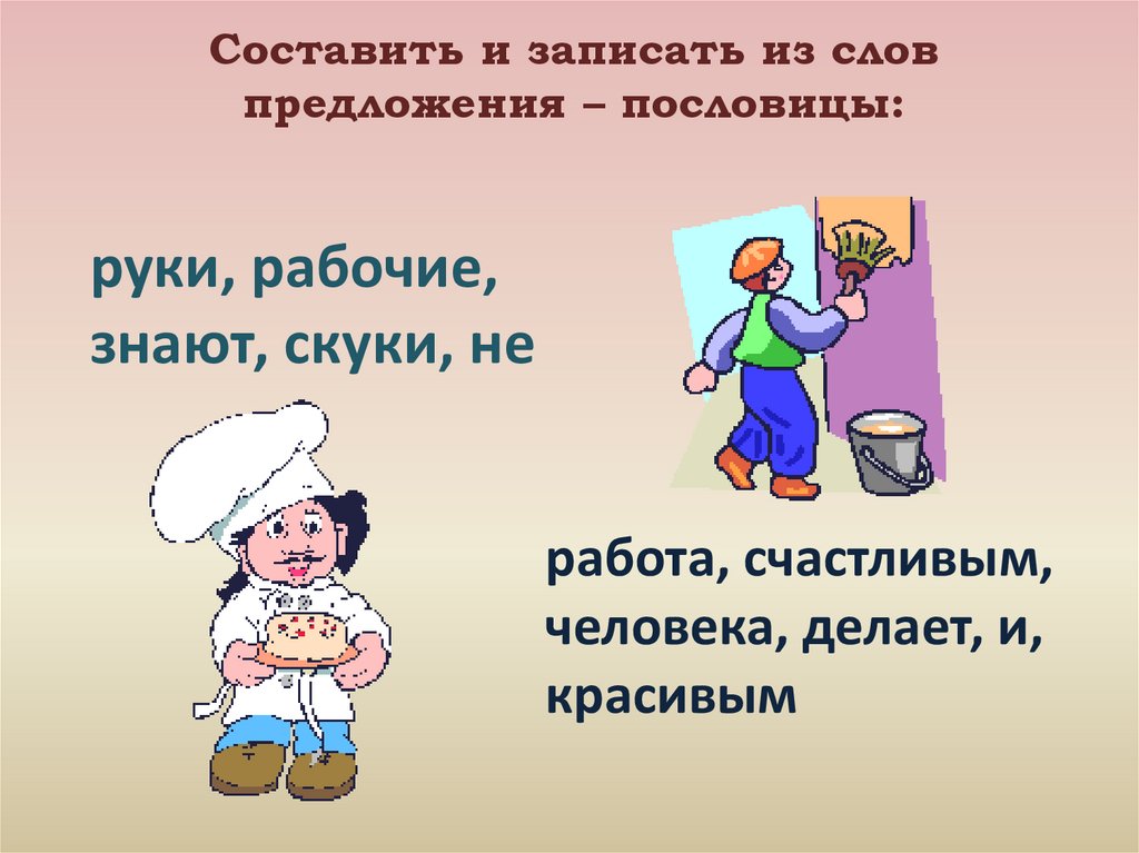 Составить и записать из словпредложения – пословицы: