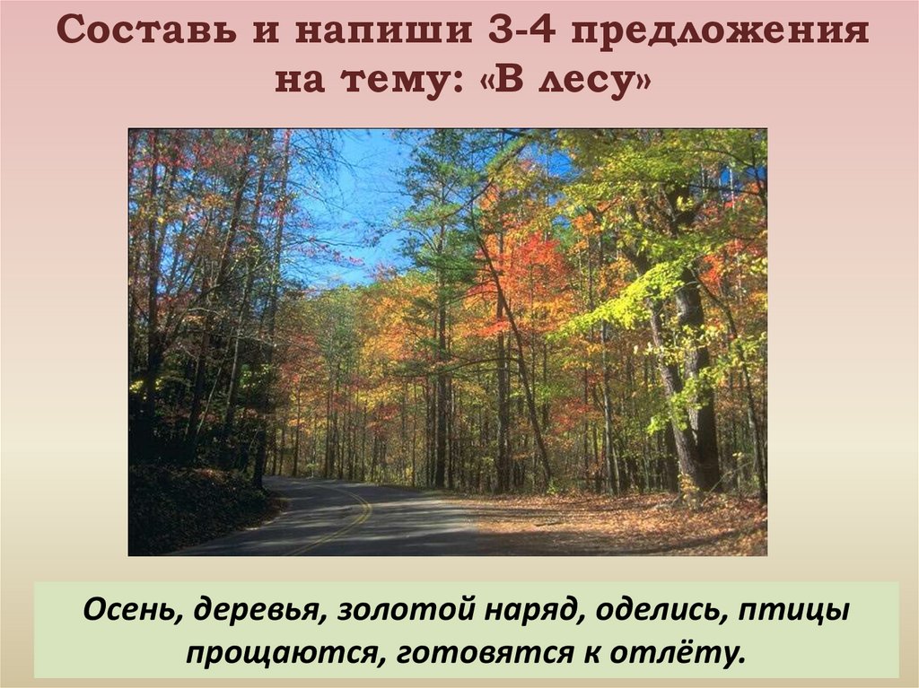 Составь и напиши 3-4 предложенияна тему: «В лесу»