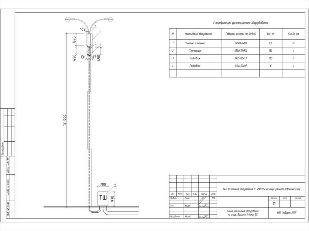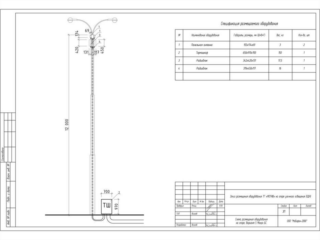 Эскиз размещения оборудования ТГ "Мотив" на опоре уличного освещения