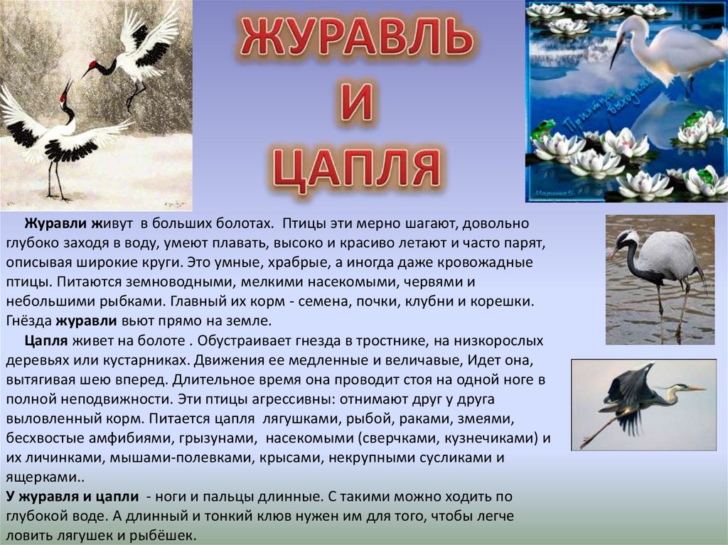 У журавля и цапли - ноги и пальцы длинные. С такими можно ходить по