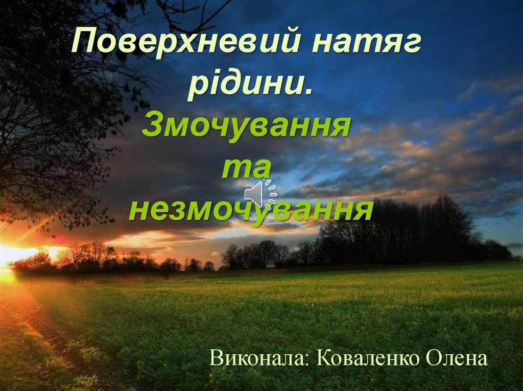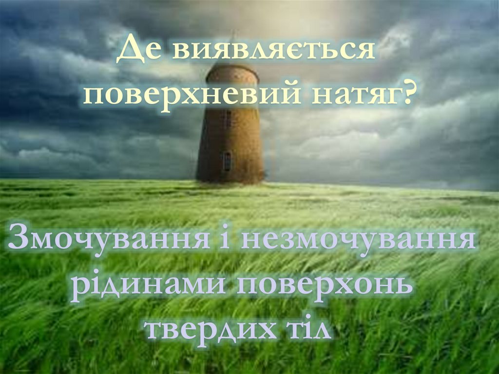 Поверхня рідини має надлишкову енергію іповодиться подібно до пружної плівки, яка