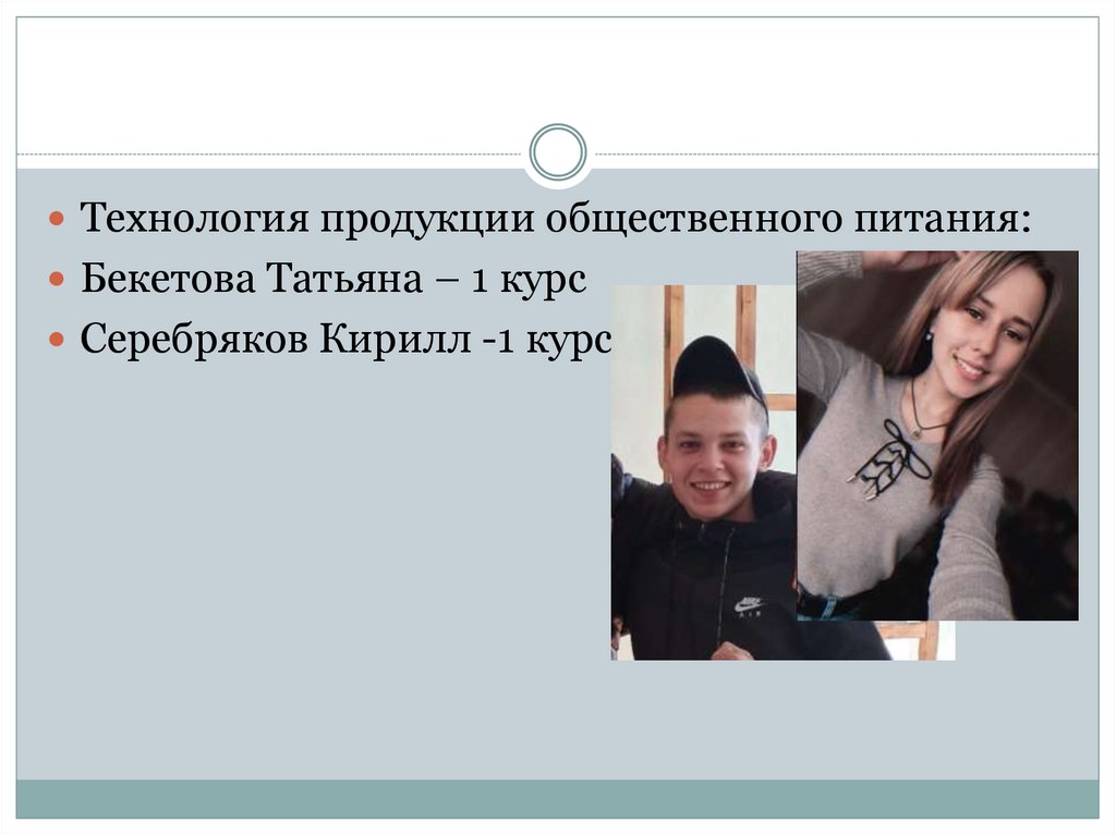 Технология продукции общественного питания:Бекетова Татьяна – 1 курс