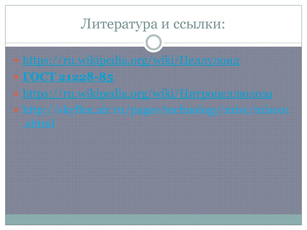 Литература и ссылки:https://ru.wikipedia.org/wiki/Целлулоид