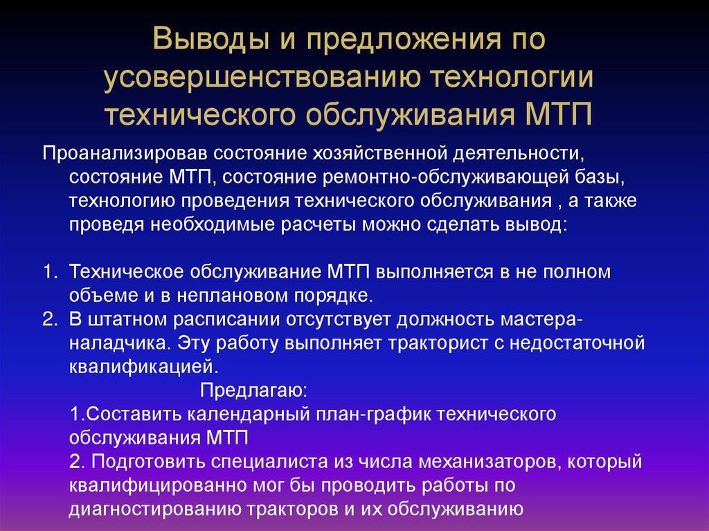 состояние МТП, состояние ремонтно-обслуживающей базы,