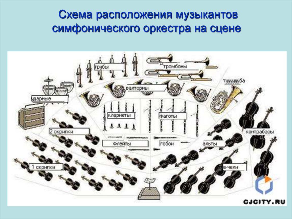 Схема расположения музыкантовсимфонического оркестра на сцене