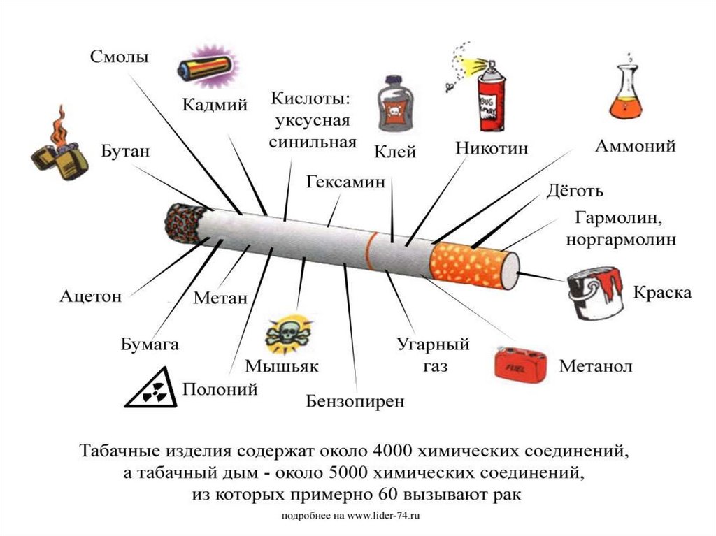 Аммиак и табачный деготь (смолы) при сгорании табака попадают в трахею, бронхи и