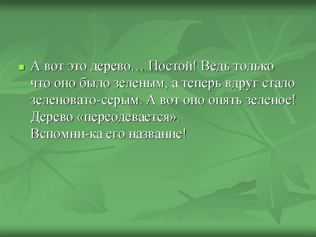 А вот это дерево… Постой! Ведь толькочто оно было зеленым, а теперь вдруг стало