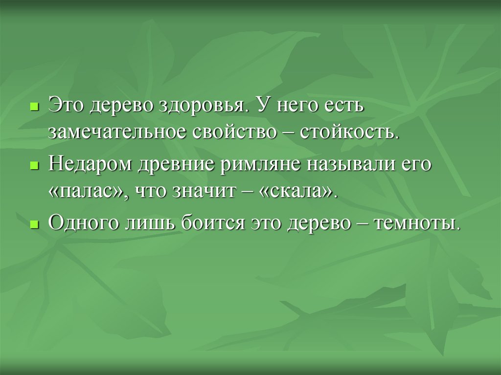 Это дерево здоровья. У него естьзамечательное свойство – стойкость.