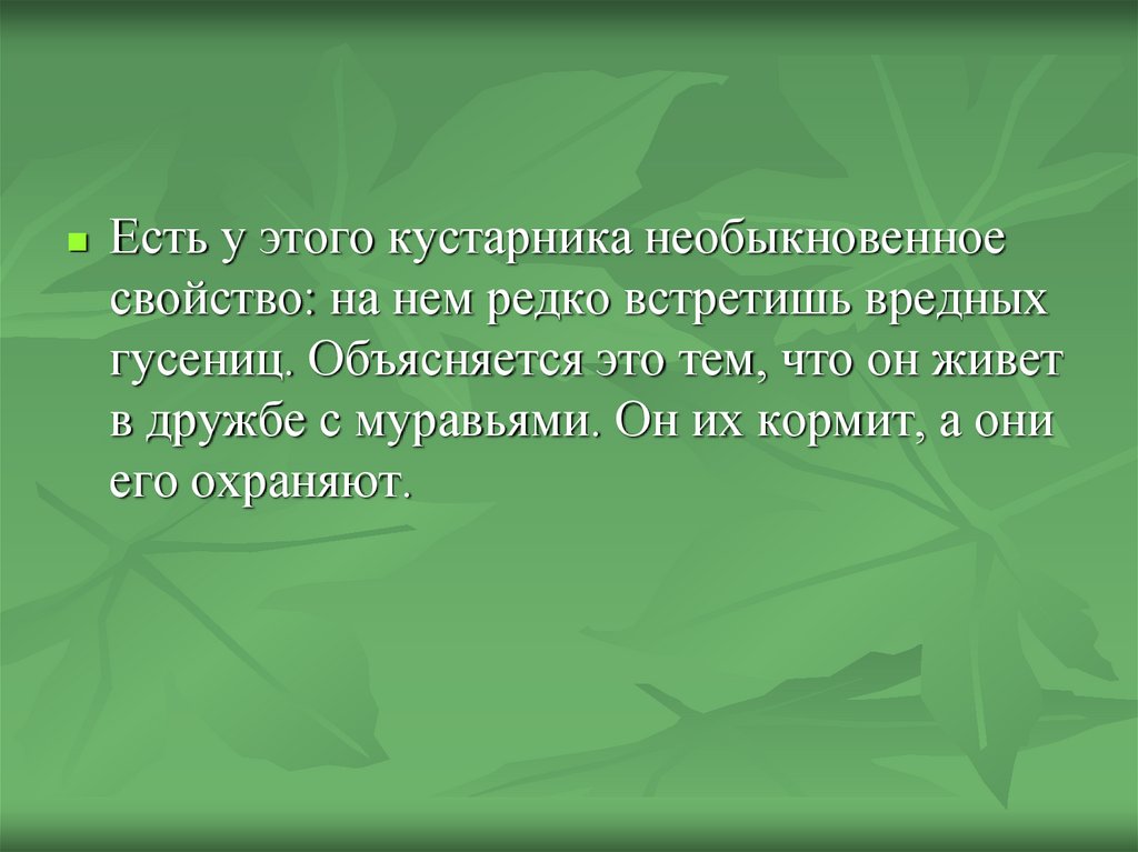 Есть у этого кустарника необыкновенноесвойство: на нем редко встретишь вредных