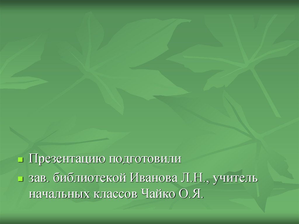 Презентацию подготовилизав. библиотекой Иванова Л.Н., учитель