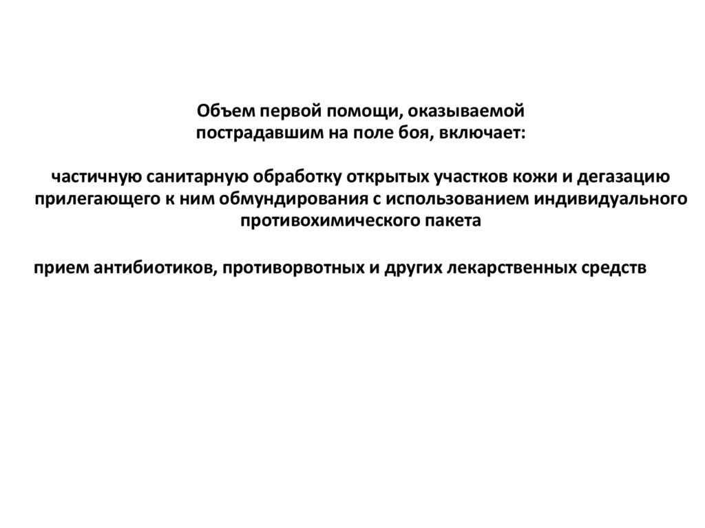 Объем первой помощи, оказываемойпострадавшим на поле боя, включает: