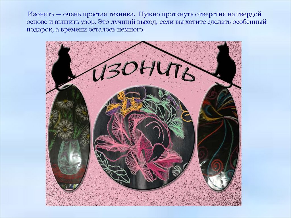 Изонить — очень простая техника. Нужно проткнуть отверстия на твердойоснове и вышить узор. Это лучший выход, если вы хотите сделать особенный
