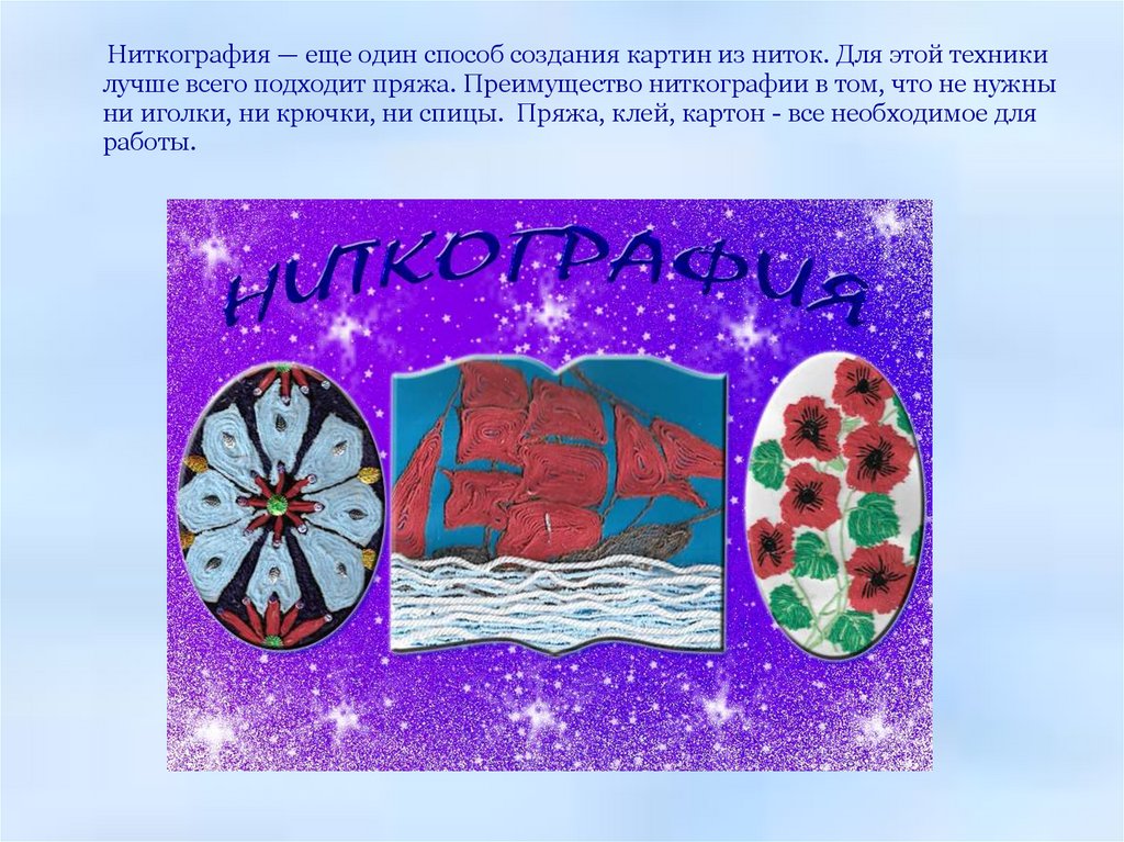 Ниткография — еще один способ создания картин из ниток. Для этой техникилучше всего подходит пряжа. Преимущество ниткографии в том, что не нужны
