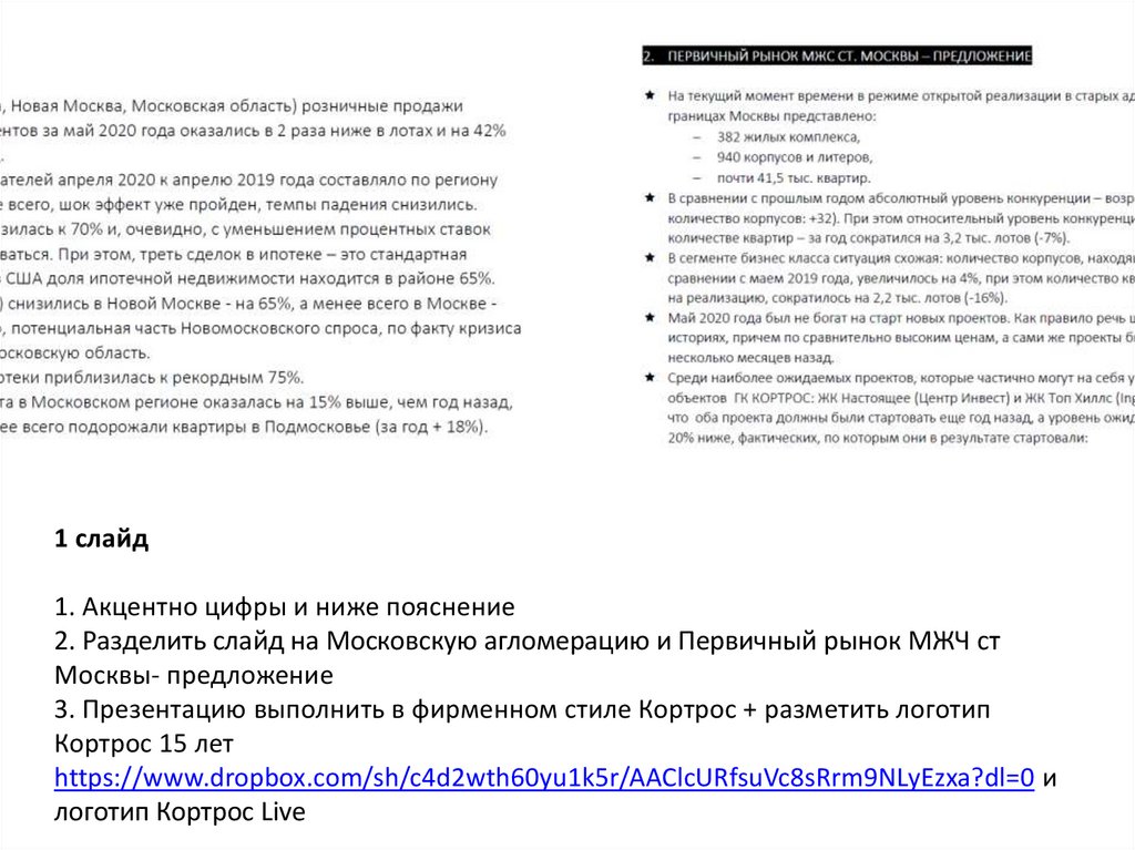 2. Разделить слайд на Московскую агломерацию и Первичный рынок МЖЧ ст