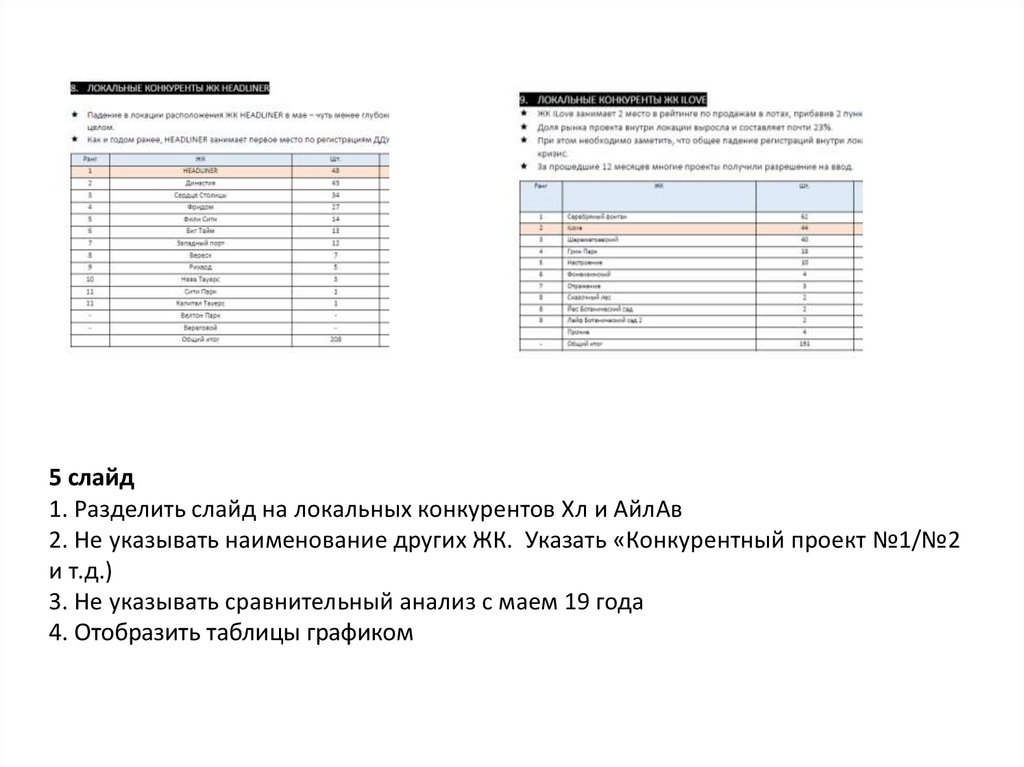 2. Не указывать наименование других ЖК. Указать «Конкурентный проект №1/№2