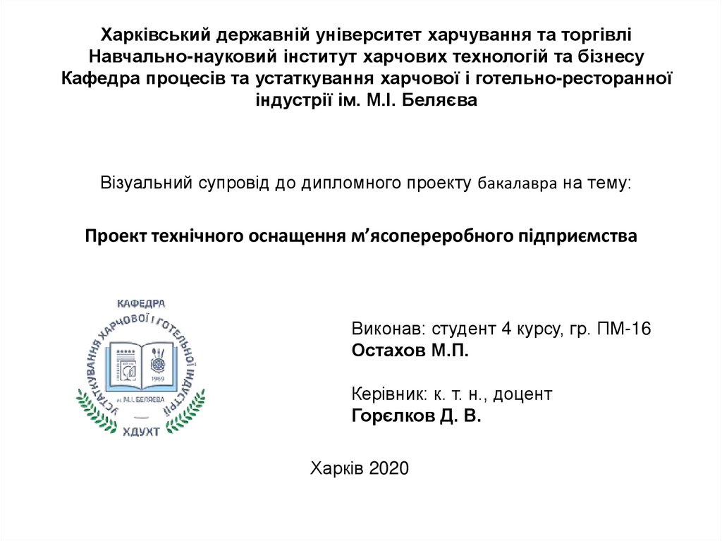 Харківський державній університет харчування та торгівліНавчально-науковий інститут харчових технологій та бізнесу