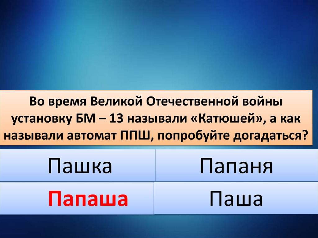 Во время Великой Отечественной войныустановку БМ – 13 называли «Катюшей», а как
