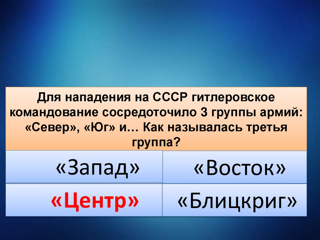 Для нападения на СССР гитлеровскоекомандование сосредоточило 3 группы армий: