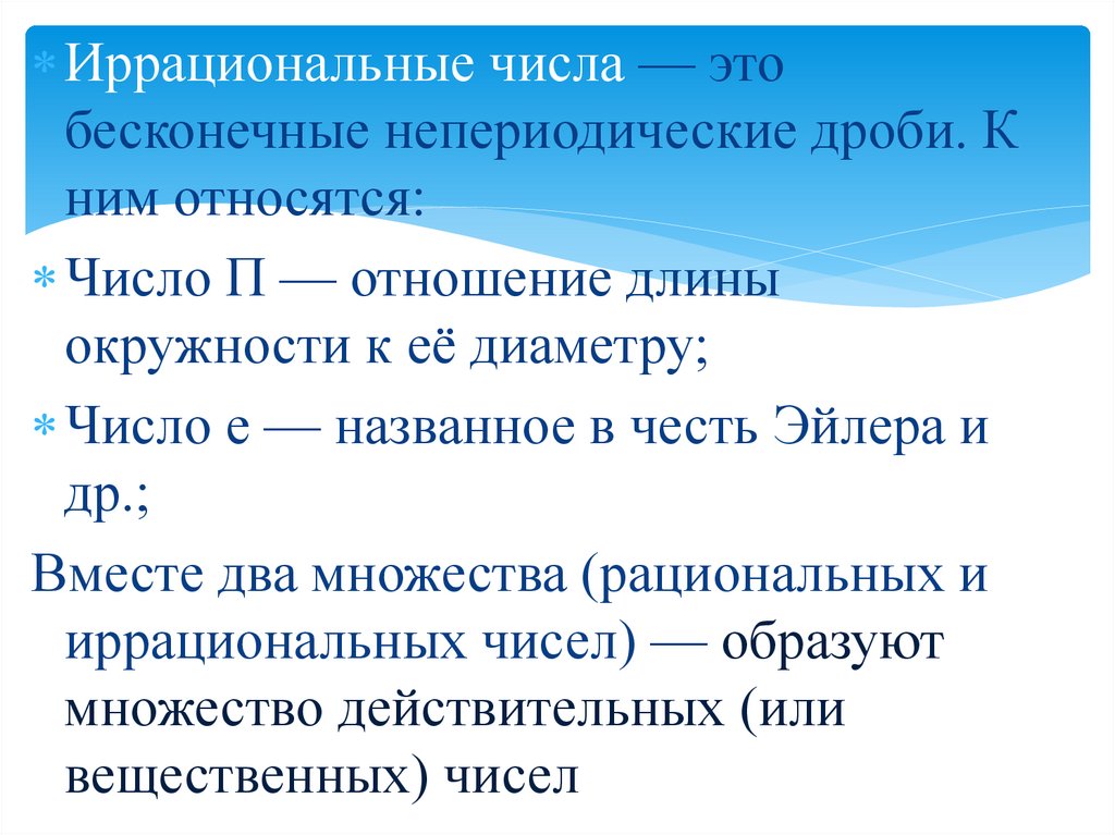 Иррациональные числа — этобесконечные непериодические дроби. К